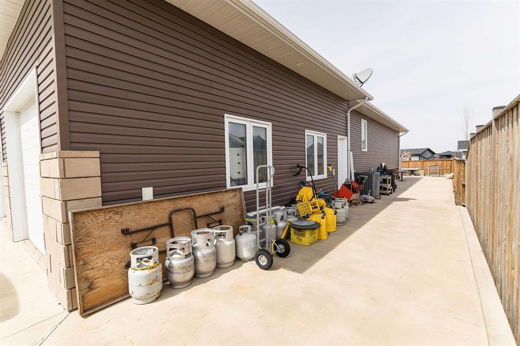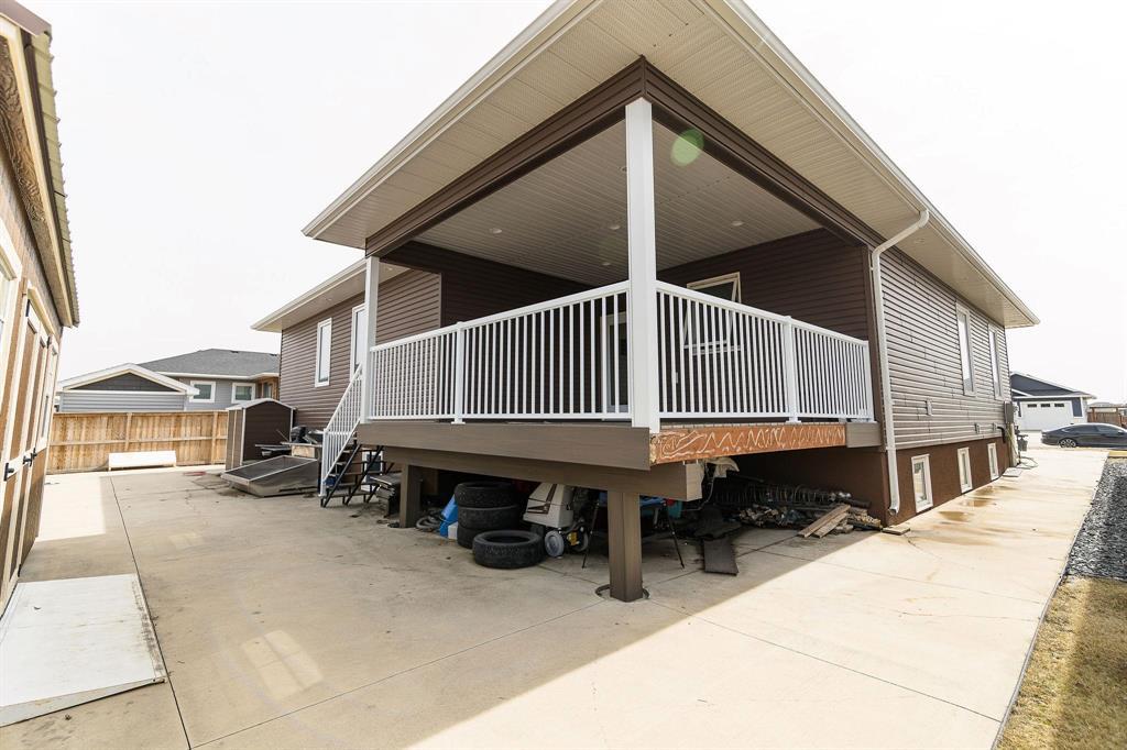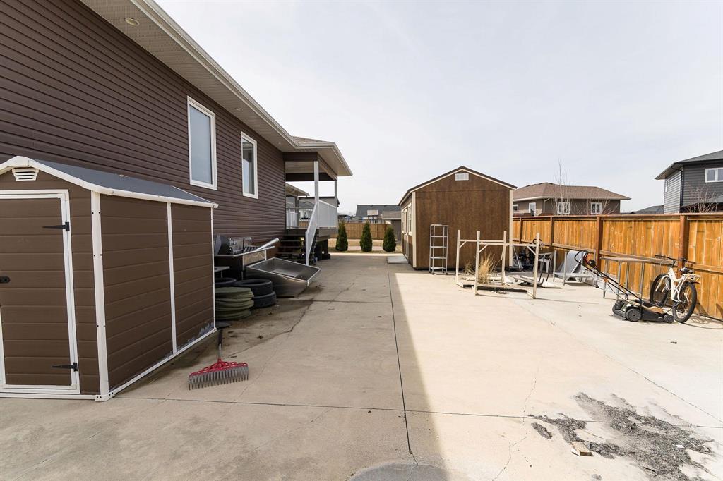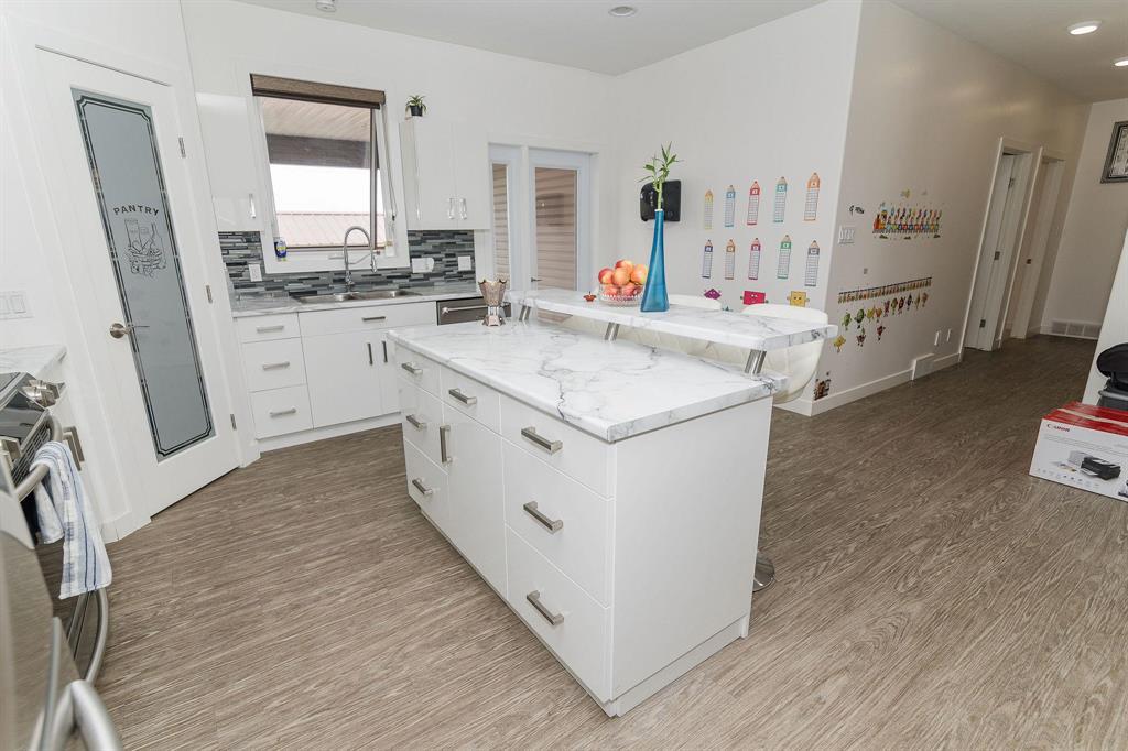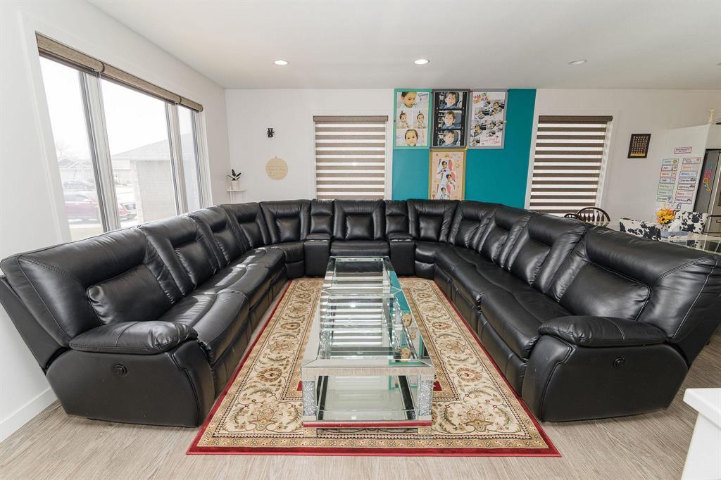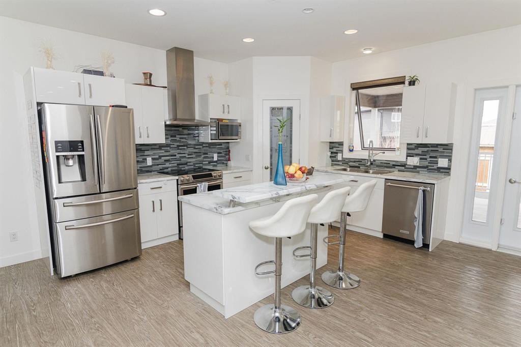 R35//Winkler/Large family home in Pine Ridge Area offering 2,156 sq ft and a bright, open layout. The kitchen features white cabinetry, a central island, corner pantry, and stainless steel appliances, flowing seamlessly into the living and dining areas for easy everyday living.The main floor includes 3 bedrooms, each with its own full ensuite a rare and highly practical setup plus an additional 4-piece bath and a dedicated office space. The backyard is designed for low maintenance with a covered deck and fully concrete patio, giving you a clean, usable outdoor space year-round without the upkeep. Additional features include a high-efficiency gas furnace, a heated 26 x 26 garage with a kitchenette, and a basement with 9 ceilings ready for future development. A well-designed home that offers privacy, functionality, and a step above the typical layout, all in a quiet, established area of Winkler. (id:35509)